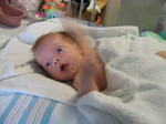 complications. Ryan appeared to be a perfectly healthy 6lb. 15oz. baby boy. However, early the next morning, Ryan was transferred to the NICU because he was slightly jaundiced. We didn't really know what that meant, but we knew the Neonatal Intensive Care Unit (NICU) was for really sick babies. We went to the NICU to see Ryan and we were told that this was not out of the ordinary and that after he received phototherapy for a couple of days, he would be fine. As a standard procedure, they also ran some routine blood work. When the results of the blood work came back, it showed that Ryan's calcium level was extremely low so the doctor said he was going to give Ryan some calcium and that everything would be fine. After a few days, Ryan's jaundice had resolved, but the calcium level continued to be extremely low even after he would get an injection of calcium. This confused the doctors and after 10 days in the NICU we had him transferred to Albany Medical Center's NICU.
